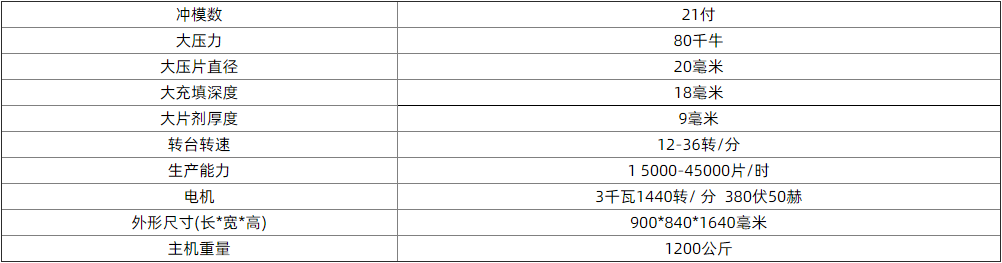 本機(jī)用以將各種顆粒狀原料壓制成片狀,其優(yōu)點(diǎn)是除圓形片外還能壓制各種幾何形狀的異形片、雙層片、環(huán)形片及雙面刻字片。轉(zhuǎn)盤(pán)上可裝有21付活絡(luò)式?jīng)_模,旋轉(zhuǎn)一周即可壓21片。壓片時(shí)轉(zhuǎn)盤(pán)的速度、物料的充填深度、壓片厚度均可調(diào)節(jié),還可以選片看樣。壓片的壓力是由液壓系統(tǒng)設(shè)定的,并附有壓力表顯示。液壓系統(tǒng)內(nèi)配有過(guò)載保護(hù)裝置,在壓力過(guò)載時(shí)能自動(dòng)停機(jī),避免機(jī)械的損壞。隨機(jī)附有單獨(dú)的吸粉箱,通過(guò)吸粉管與吸嘴,可吸取機(jī)器運(yùn)轉(zhuǎn)時(shí)所產(chǎn)生的粉塵,避免粉塵粘結(jié)堵塞,并可回收原料重新使用。本機(jī)是我廠(chǎng)八十年代研制的新產(chǎn)品。銷(xiāo)往國(guó)際市場(chǎng)。